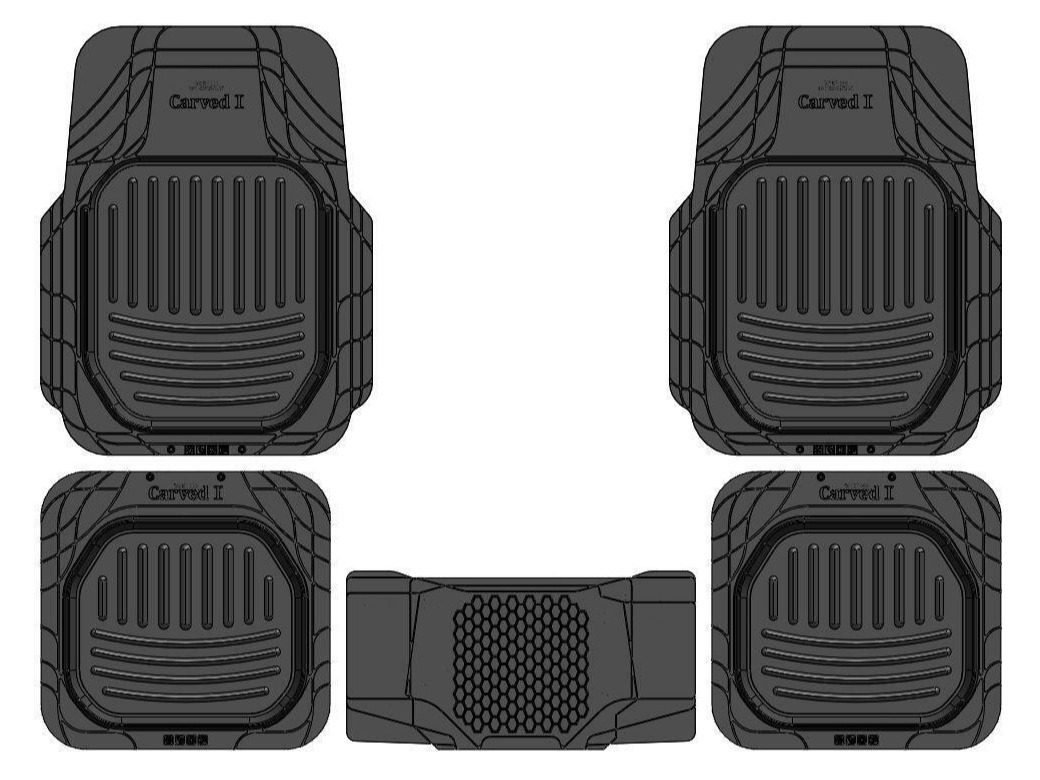 - Уникальный дизайн: Рельефный рисунок "Carved" не только придает коврикам стильный и современный вид, но и выполняет важную практическую функцию. Он эффективно удерживает грязь, песок и влагу, предотвращая их распространение по салону.